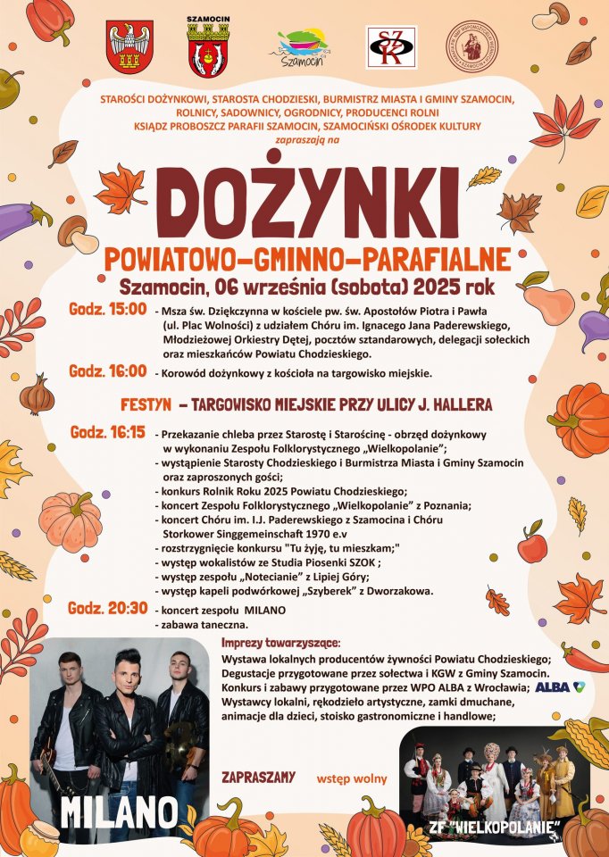 Zapraszamy na Dożynki Powiatowo-Gminno-Parafialne w Szamocinie!