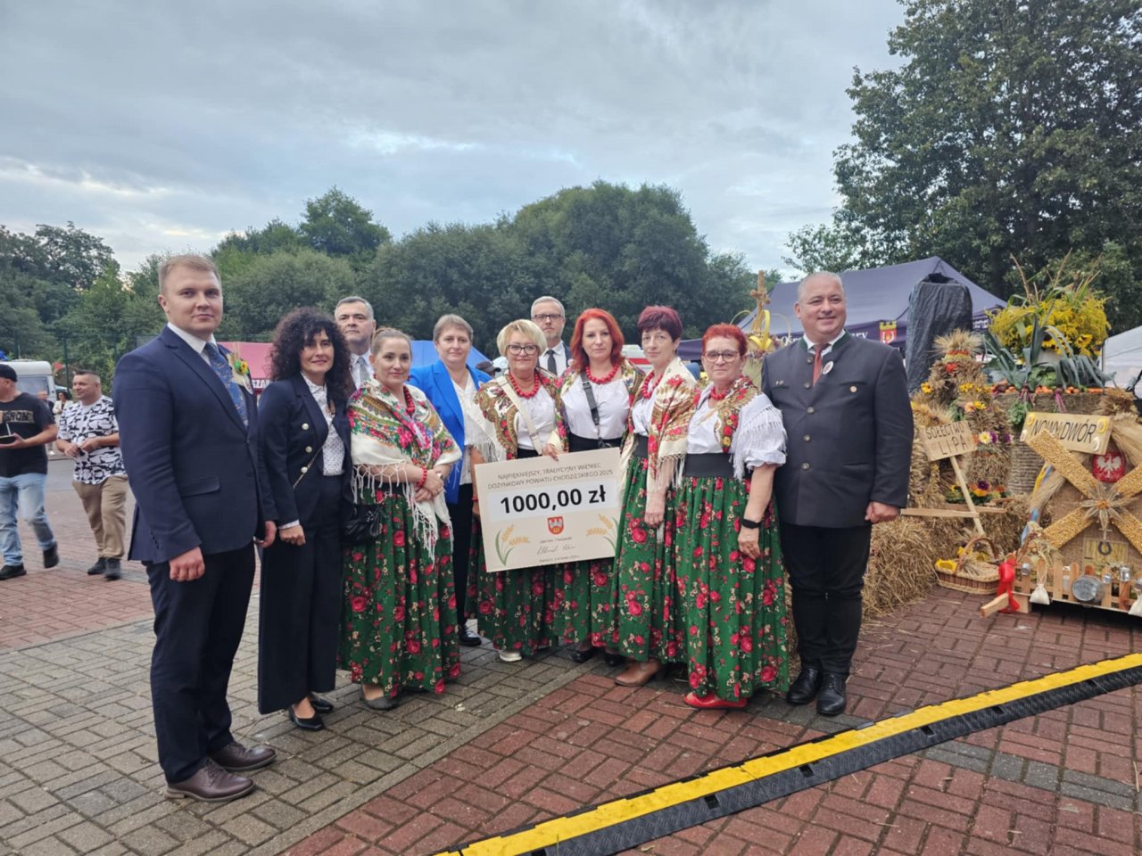 Starosta chodzieski Adrian Urbański, wicestarosta Mariusz Witczuk oraz przewodniczący rady powiatu chodzieskiego Marcin Kita, pogratulowali twórczyniom wieńca, wręczając nagrodę w wysokości 1000,00 zł.