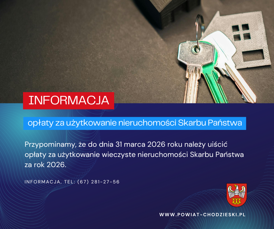 Przypominamy, że do dnia 31 marca 2026 roku należy uiścić opłaty za użytkowanie wieczyste nieruchomości Skarbu Państwa za rok 2026.