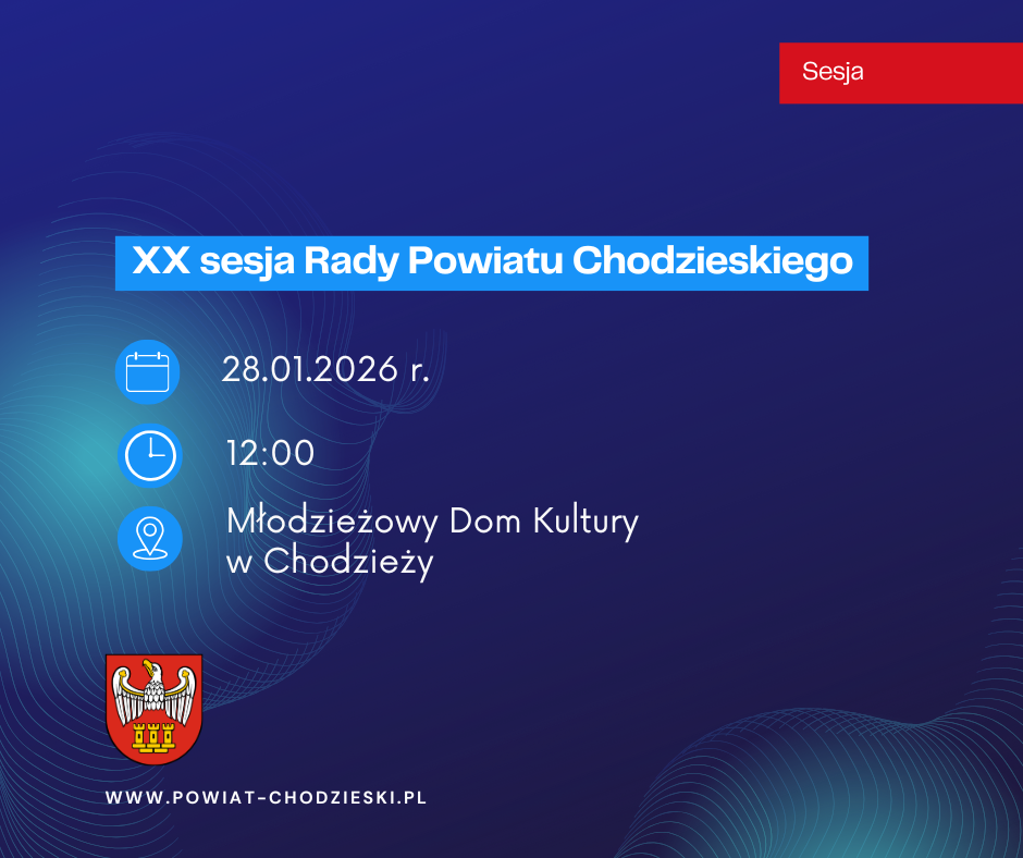 XX Sesja Rady Powiatu Chodzieskiego odbędzie się 28 stycznia 2026 r., o godz. 12:00 w Młodzieżowym Domu Kultury im. Janusza Korczaka w Chodzieży.