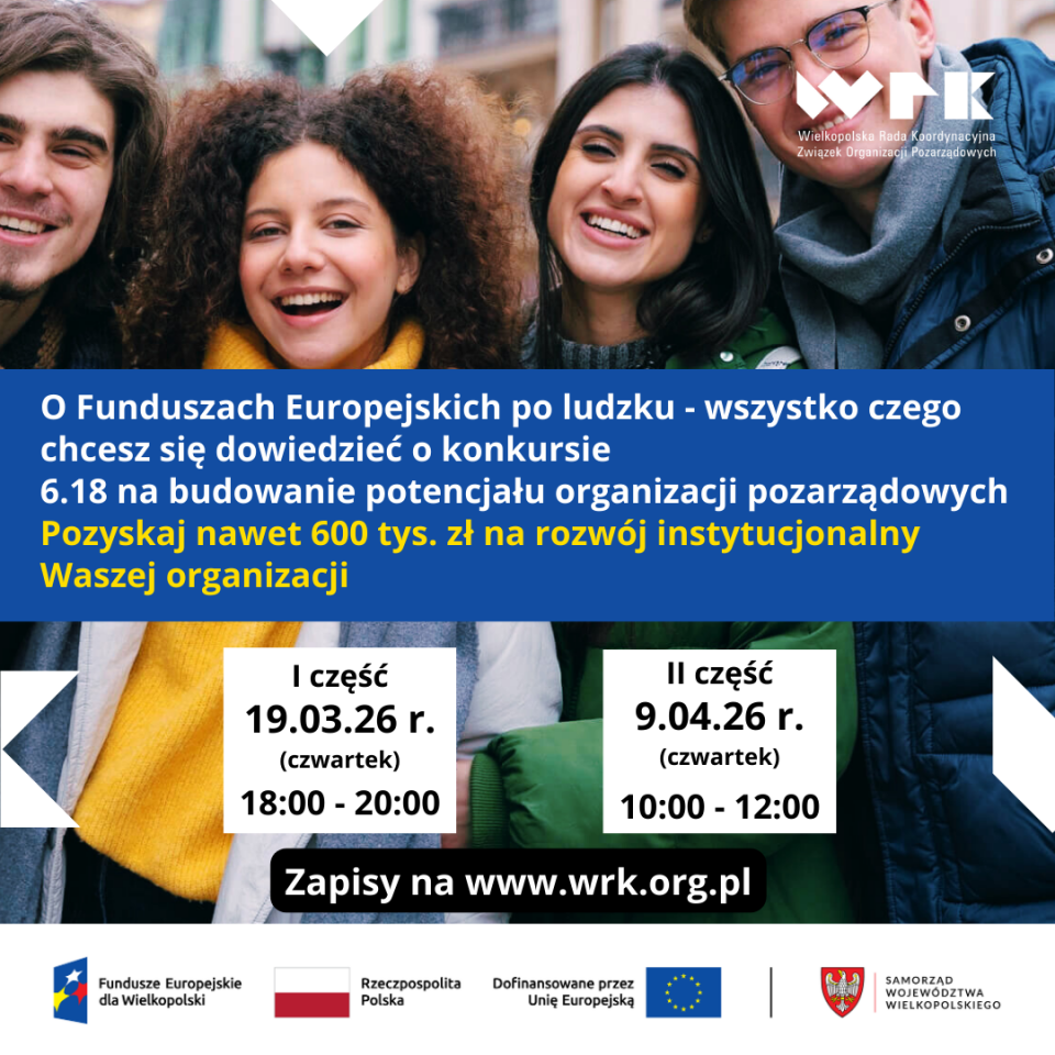 Jest to jedyny taki nabór dla wielkopolskich NGO z Funduszy Europejskich w regionie do 2029 roku.