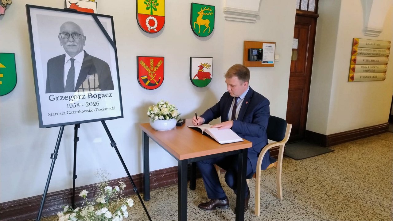 Podczas uroczystości Starosta Adrian Urbański wpisał się do księgi pamiątkowej, w geście pamięci i szacunku dla Zmarłego oraz jego działalności samorządowej i zaangażowania na rzecz lokalnej społeczności.